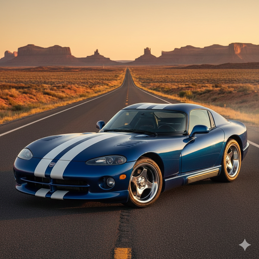 Y ese GTS en azul Viper Blue con las dos rayas blancas que van del morro a la cola, con las curvas del Daytona Coupe, con ese V10 de ocho litros gruñendo a ralentí… eso no es un coche. Es un monumento a todo lo que Detroit hizo bien cuando decidió no pedir permiso a nadie.