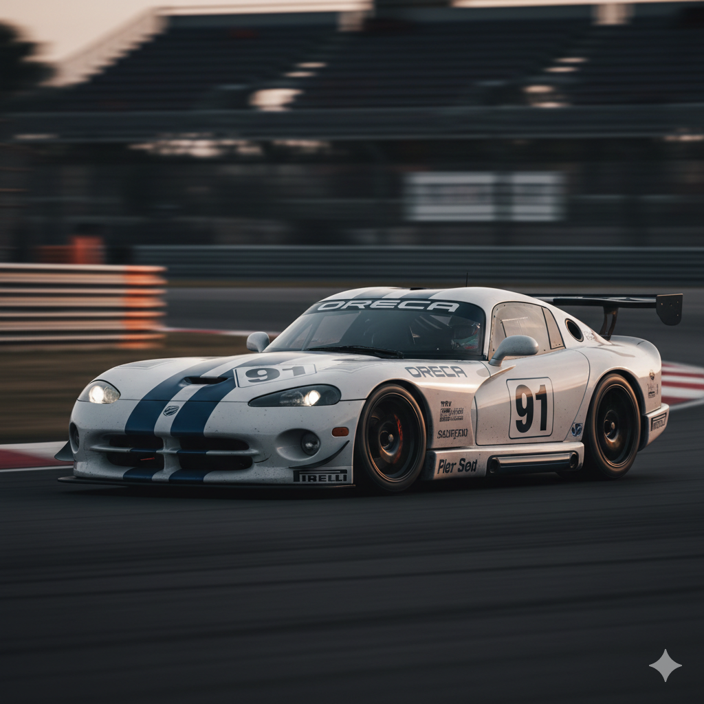 Chrysler no se conformó con hacer un coche de calle brutal. Quería demostrar que el Viper podía competir con lo mejor de Europa en los circuitos europeos. Así que desarrollaron la Viper GTS-R de competición junto con Oreca en Francia y Reynard en el Reino Unido.