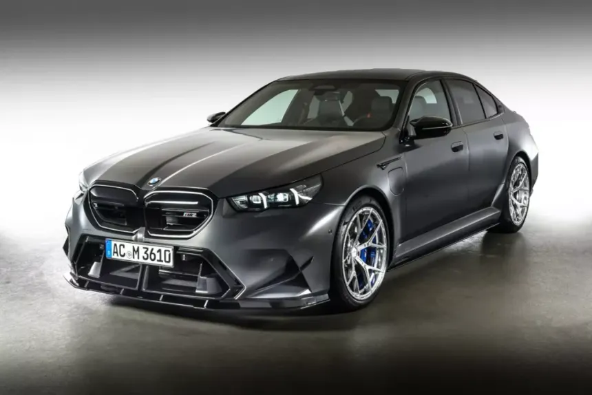 In 2025, with the shutdown already on the horizon, AC Schnitzer unveiled what is probably its last serious piece of work: the package for the BMW M5 G99 Touring. The 4.4-litre twin-turbo plug-in hybrid V8 goes from 727 factory horsepower to 810, touching only the combustion side — the 197 hp electric motor stays untouched. Full aero: splitter, side skirts, three-piece diffuser, roof spoiler. Forged AC6 wheels in 21 inches, new design. Suspension dropped 20 mm. Exhaust with four 110 mm carbon-tipped outlets.