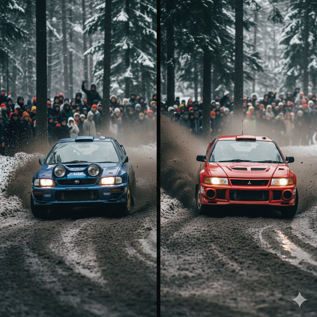 Subaru and Mitsubishi: The 90s Japanese War The Japanese took the concept further. The Impreza WRC and Lancer Evolution became icons because AWD was part of their competitive DNA. These cars hit the streets in STI and Evo trims that kept the essence: AWD that actually served a purpose, in light, powerful cars driven by people who knew how to use it.