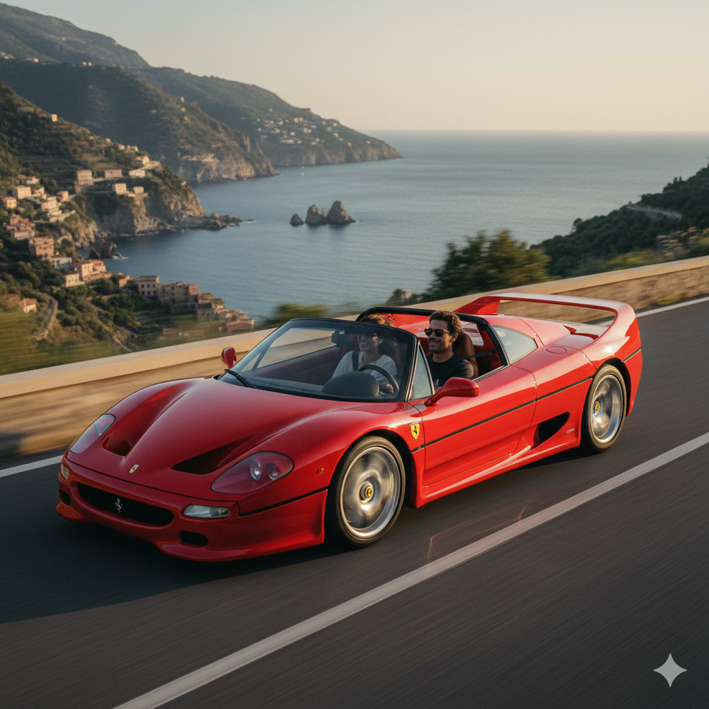 “The One Everyone Knows (But Few Understand)” Here it is. The one on your t-shirt since you were 12. The last Ferrari personally approved by Enzo Ferrari before his death in 1988. It’s a race car with a license plate. Literally. No soundproofing. No carpets. The Kevlar door panels are so thin you can see light through them.