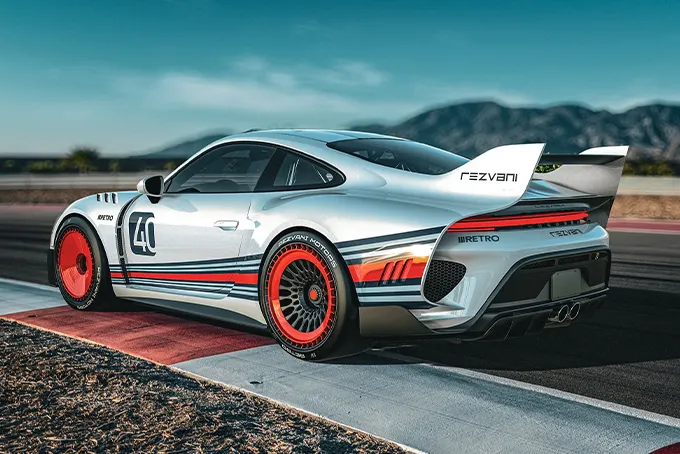 And then there’s the new division: Rezvani Retro. This one is interesting. You take a current Porsche 911 — a 992, specifically — and Rezvani drops on it a carbon fiber body inspired by the Porsche 935 Kremer from the seventies. That 935 Kremer that won Le Mans in 1979. That extreme wide-fender look, flat nose, splitters and wings that defined an era.