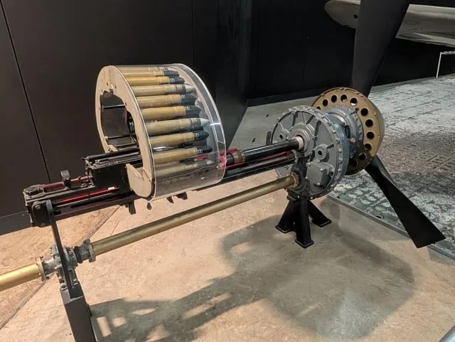 El diseño era brillante: un mecanismo de retroceso que absorbía el brutal culatazo de cada disparo, permitiendo instalarlo en aviones ligeros sin destruir la estructura. Y tenía una característica única: podía montarse entre los bancos de cilindros de un motor V12, disparando a través del eje hueco de la hélice. Era el «moteur-canon» que Guynemer había soñado con su SPAD XII.
