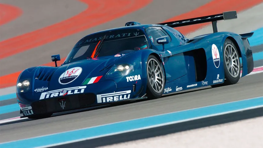 En 2004, después de casi dos décadas de ausencia, Maserati volvió a la competición. Y lo hizo con un coche que era, básicamente, un Ferrari Enzo vestido de azul y blanco. El MC12 utilizaba el chasis y el motor V12 de 6.0 litros del Enzo, recarrozado con una carrocería de fibra de carbono 290 mm más larga y diseñada específicamente para la homologación GT. Solo se fabricaron 50 unidades para carretera, al precio de 600.000 euros cada una, y todas se vendieron antes de que empezara la producción.